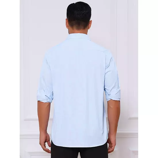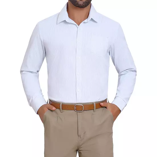 Designed for professional settings, this striped shirt features a classic pattern and pointed collar, ideal for office wear or formal occasions. Balanced stripes make coordination simple-just add a solid tie or blazer for a put-together business ensemble. Designed for versatility, this stripes shirt pairs well with suits, dress pants, or alone for a smart-casual office ensemble.