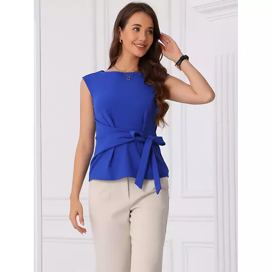 This top is made up of several design points: boat neck, cap sleeve, tie front waist, solid, to enhance your temperament, Suits for casual, daily wear, work, office, business, career, dating, coffee shop, etc. Perfectly pair with jeans or skinny pant, and pretty bags to complete the overall look.