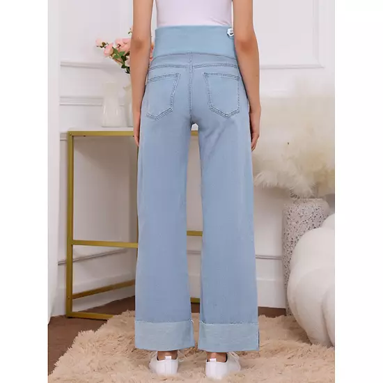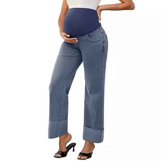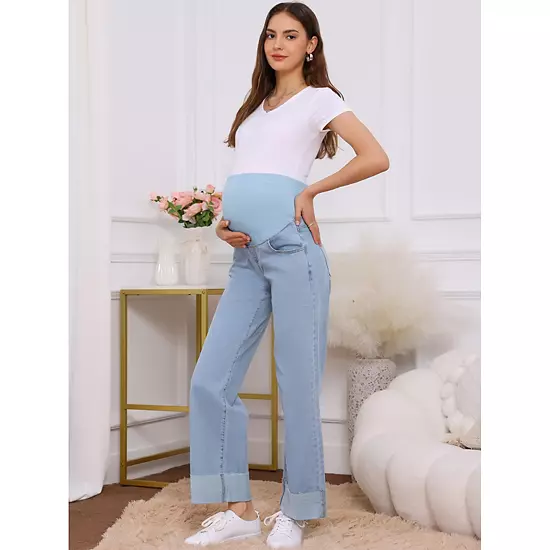 Designed with a high-waisted, soft, and stretchy full-panel, this jeans provide gentle support for your belly and back, both during pregnant and postpartum. Featuring a straight-leg design, cuffed hem and four spacious pockets, this jeans offer a relaxed, stylish look suitable for daily wear. Two side pockets and two back pockets combine both function and fashion. Straight-leg fit, soft belly panel, elastic waistband that stretches with your bump. Perfect for everyday wear, lounging, working, traveling, shopping, or enjoying a casual walk around the park, these jeans are designed to keep you comfortable and stylish throughout the day.