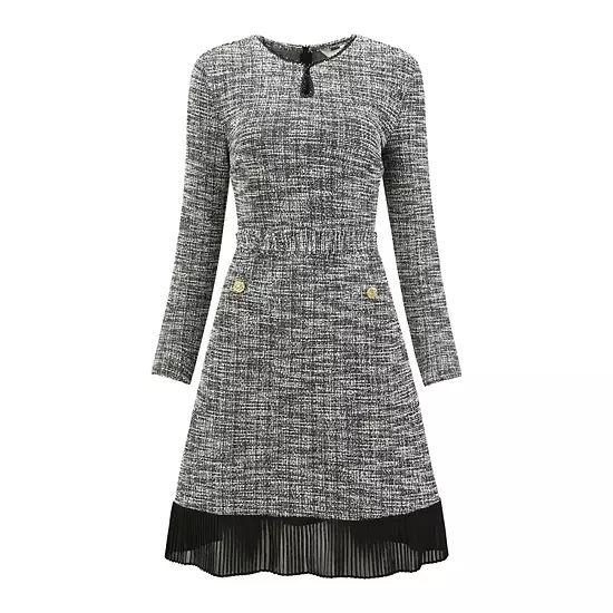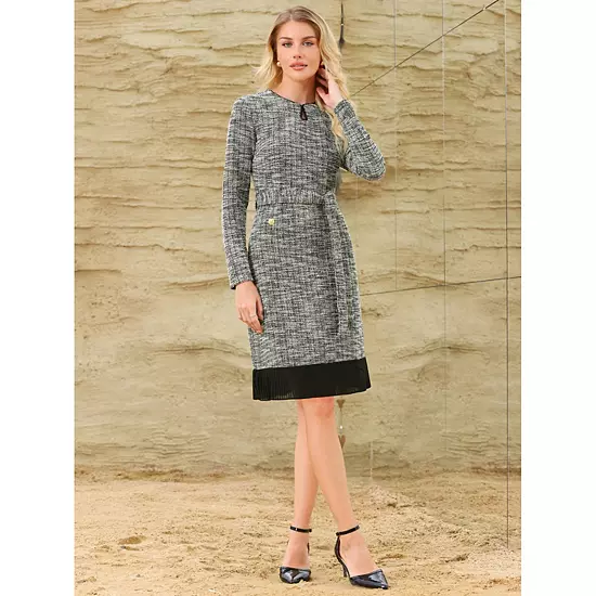 Keep your look professional and stylish in this dress, featuring a round neck, keyhole front, long sleeve, button decor, bead decor, zipper back, A Line and pleated hem; Pair with high heels for an elegant office look; Focused on Ladies’ Formal Wear – This dress can be a perfect addition to almost any outfit from formal to daily wear, great for work, meeting, office, businesses, party, cocktail, wedding, funeral, church, casual, daily dressing, etc.