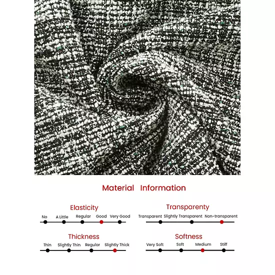 - 77% Polyester,10% Wool,6% Cotton,5% Acrylic, 2% Spandex