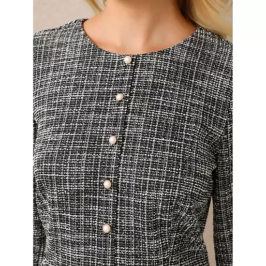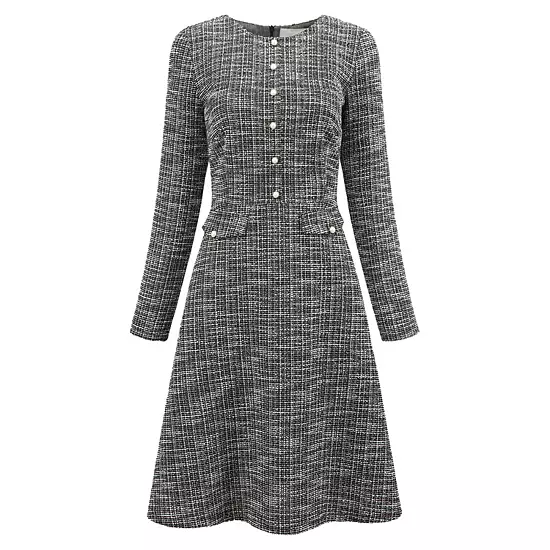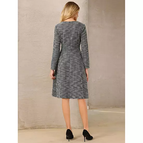 Keep your look professional and stylish in this dress, featuring a round neck, long sleeve, buttons and pockets decor, zipper back, A Line; Pair with high heels for an elegant office look; This dress can be a perfect addition to almost any outfit from formal to daily wear, great for work, meeting, office, businesses, party, cocktail, wedding, funeral, church, casual, daily dressing, etc.