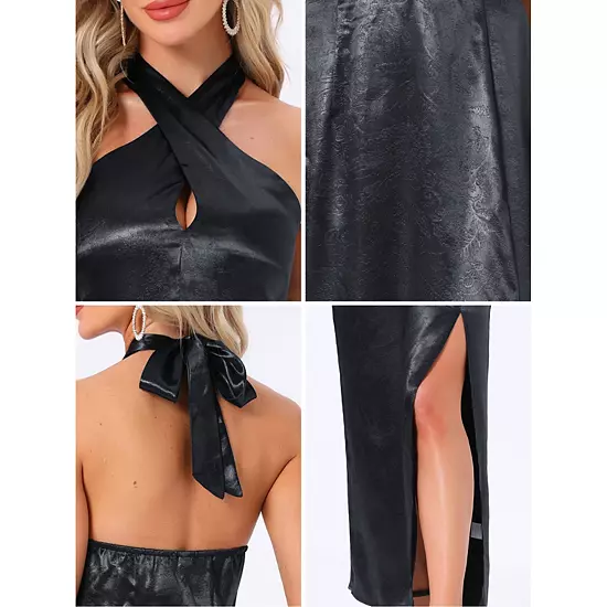 To be the shiny star in the crowd with halter dress featuring deep v neck, slit and floral print to show your charming; This womens maxi dress is a stunning choice for semi-formal, formal or casual occasion like cocktail, party, club, evening, night out, dance, prom, banquet, dating, casual, vacations, holidays, wedding guest, brides, bridesmaid, etc; Pair this halter dress with high heels and clutch for a gorgeous and glamorous look.