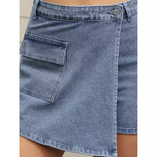 Casual and Fashion Style: This denim shorts focuses on casual style, finished with a faux wrap detail for a touch of edginess and modern twist to the classic design; Features:Regular Fit, Faux Wrap Design, High Waisted, Pockets, Mini Short, Zipper, Button, casual jean shorts for women; Casual Chic: Style with a basic tee, blouse, top, crop top, tank, vest or high heel for a chic and urban-inspired outfit; Occasion: This jean short is suit for casual outings; Such as home, party, school, street, trip, outdoor, date, shopping, travel and so on.