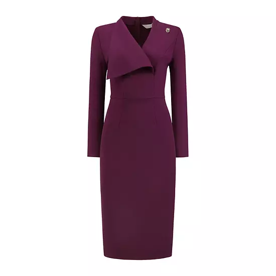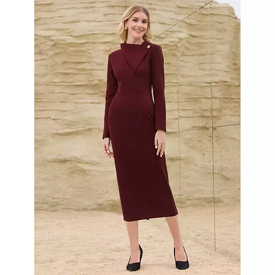 Keep your look professional and stylish in this dress, featuring a Lapel V neck, long sleeve, slip back, soft fabric and midi length.; Pair with high heels for an elegant office look; Focused on Ladies’ Formal Wear – This dress can be a perfect addition to almost any outfit from formal to daily wear, great for work, meeting, office, businesses, party, cocktail, funeral, church, wedding, casual, etc.