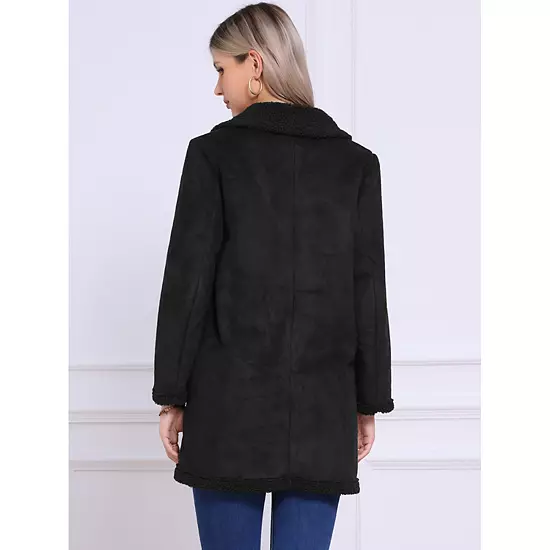 Fleece jacket women crafted from premium faux shearling fabric, offering ultimate warmth, comfort and softness; Winter coat suitable for Casual Outing, Birthday Party, Halloween, Christmas, New Year Or Special Gatherings; This women long coat goes perfect with a shirt, sweater, jeans, leggings, palazzo pants underneath and with short boots; Whether you’re heading to the office, a weekend brunch, or a coffee date, this fleece jacket effortlessly transitions from casual to polished. Pair it with jeans for a relaxed vibe or dress it up with skirts. Crafted with classic double-breasted buttons, this warm jacket combines elegance with a touch of edge. Two pockets add practicality and a sleek look, allowing you to carry essentials hands-free without sacrificing chic.