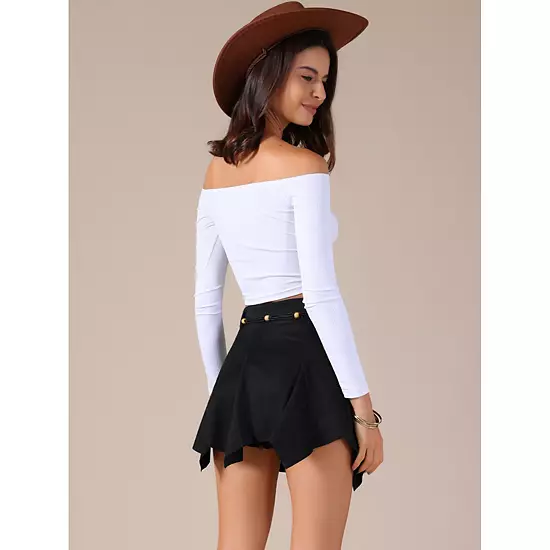 Its A-line design allows for easy movement, while the chic pleats give it an elegant yet edgy look; The design of irregular hemline and mini length highlight your legs, creating a flattering silhouette; Perfect to pair a crop jacket and ankle boots for a fashion look.