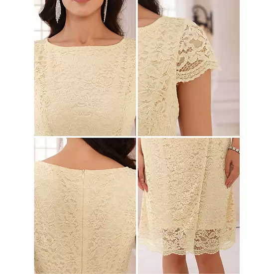 To be the shiny star in the crowd with cocktail dress, featuring boat neck and cap sleeve to show your charming; This lace floral dresses is a stunning choice for semi-formal or formal occasion like cocktail, evening, party, wedding guest, bridal, bridesmaid, banquet, prom, graduation, etc; Pair this vintage dress with exquisite high heels, necklaces, earrings and clutch for a gorgeous and glamorous look.
