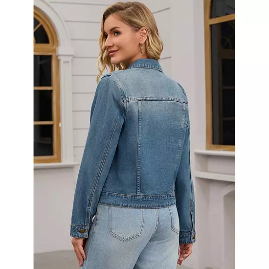 Womens Casual Washed Button Up Denim Jackets; With its long sleeves and a flattering cropped silhouette, this jacket adds playful femininity to any outfit; Pair with high-waisted jeans for a charm double denim look or layer over a floral dress for a mix of edgy and feminine styling; Regular Fit, Turndown Collar, Button Down; This jean jacket is suit for casual outings; Such as daily, party, school, street, airport, shopping trips or brunch with friends and so on.