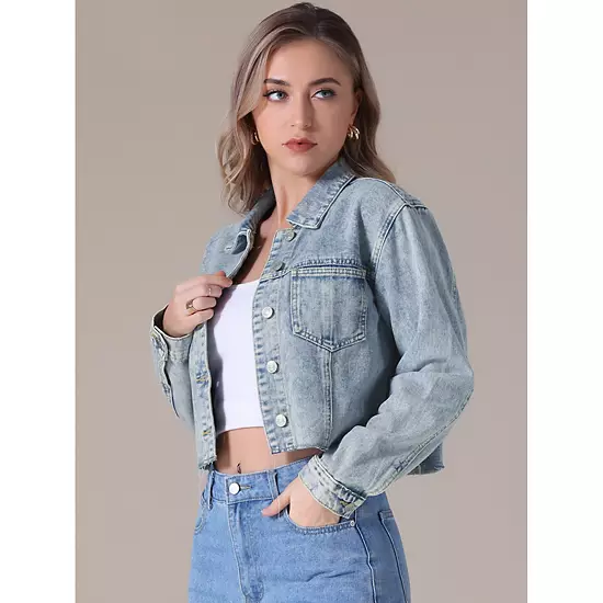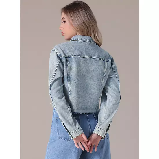 Timeless and Fashion Style: This denim jacket features a fashionable frayed hem design and a cropped silhouette that adds a modern twist to the classic denim jacket style; Features: Regular Fit, Turndown Collar, Crop Length, Long Sleeve, Button Down, Frayed, 2 Chest Pockets; Casual Chic: Pair with high-waisted jeans for a charm double denim look or layer over a floral dress for a mix of edgy and feminine styling; Occasion: This jean jacket is suit for casual outings; Such as daily, party, school, street, airport, shopping trips or brunch with friends and so on.