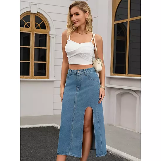 The A-line silhouette flows gracefully from the waist down, offering a comfortable fit that flatters all body types; The daring thigh-high split adds a trendy touch; Whether you’re strolling through the city streets, meeting friends for brunch, or heading to a social event, this skirt effortlessly transitions between different occasions.