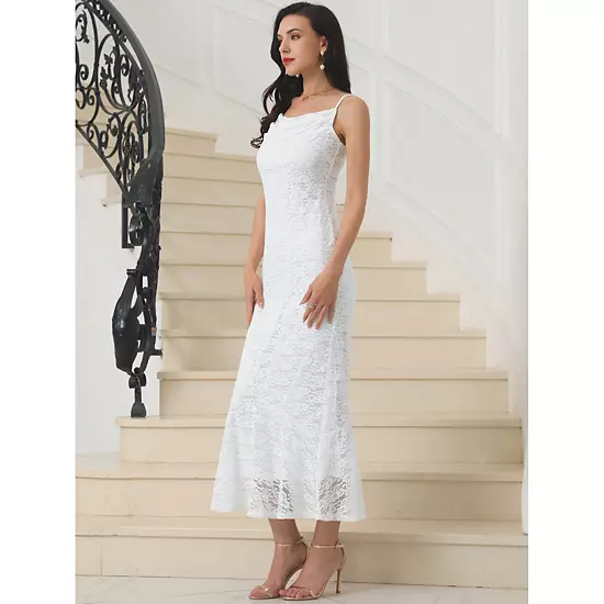 To be the shiny star in the crowd with cocktail maxi dress, featuring lace floral pattern and spaghetti strap to show your charming; This floral lace dress is a stunning choice for semi-formal or formal occasion like cocktail, evening, party, wedding guest, bridal, bridesmaid, banquet, prom, graduation, homecoming, etc; Pair this bodycon sleeveless dress with exquisite high heels, necklaces, earrings and clutch for a gorgeous and glamorous look.
