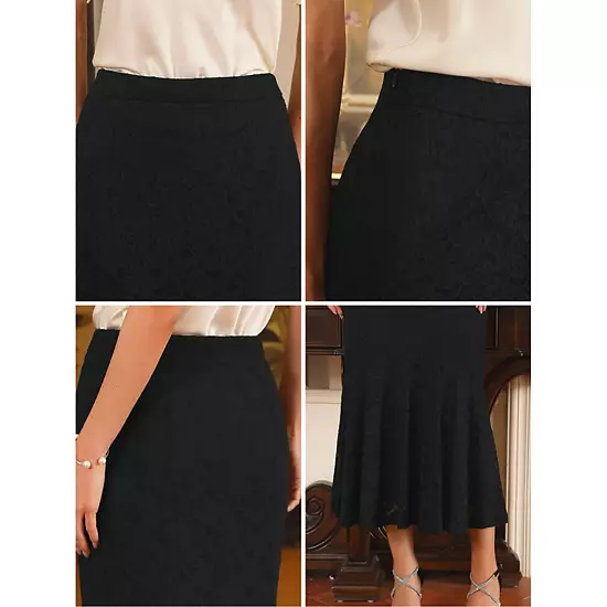 To be the shiny star in the crowd with Cocktail midi skirt, featuring flower lace pattern and fishtail ruffle hem to show your charming; This lace skirt is a stunning choice for semi-formal or formal occasion like night out, cocktail, evening, party, wedding guest, bridesmaid, banquet, prom, ceremony, etc; Pair this fishtail skirt with exquisite high heels, necklaces, earrings and clutch for a gorgeous and glamorous look. Perfectly matched with Womlayout’s satin blouse for versatile style.