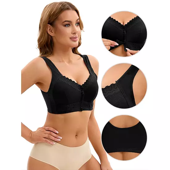 Lace, Front Closure, Full Coverage, Workout, Wirefree, Breathable; Say goodbye to uncomfortable underwires and with unrestricted with the wirefree construction of these sports bras.; Great for everyday wear, this bra provides enough support and comfort; The intricate lace design not only enhances the aesthetics but also offers convenient closure for easy wear and removal before and after your workouts.