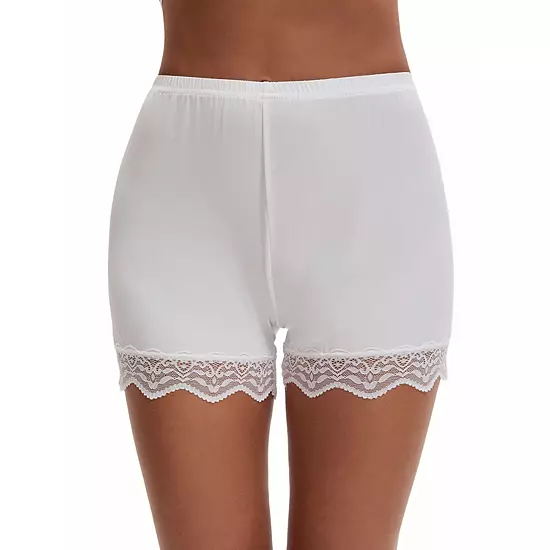 Upgrade your undergarment essentials with the Women’s Lace Trim Ice Silk Mid-Waist Loose Slip Shorts, offering a perfect blend of comfort and style for everyday wear; Crafted from ice silk fabric, these slip shorts deliver a light and breathable feel, ensuring optimal ventilation and unrestricted movement; Enjoy a flattering and comfortable fit with the mid-waist design of these slip shorts; The intricate lace trim detail adds an elegant touch to these versatile boyshorts, making them the epitome of sophistication and comfort.