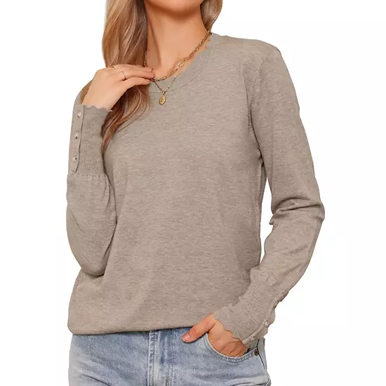 Elevate your wardrobe with our Lightweight Sweaters for Women, designed to offer both elegance and warmth without the bulk; These regular fit sweaters are the epitome of versatility, making them an ideal choice for any occasion from casual outings to business meetings; Crafted from a soft knit fabric, our long sleeve crew neck pullovers provide a comfortable and flattering silhouette that you’ll love wearing all day; The trendy wave hem adds a stylish twist to the classic basic design, ensuring you stand out while staying effortlessly chic; Perfect for spring and fall outfits, these lightweight sweatshirts double as blouses that can be easily paired with jeans or skirts for a polished look; Whether you’re dressing up for a night out or going for a laid-back vibe, our ribbed sweaters are the go-to choice for fashion-forward women; Stay cozy and fashionable this season with our collection of elegant, lightweight sweaters that embody the perfect balance of style and functionality; Upgrade your closet with these must-have tops today.