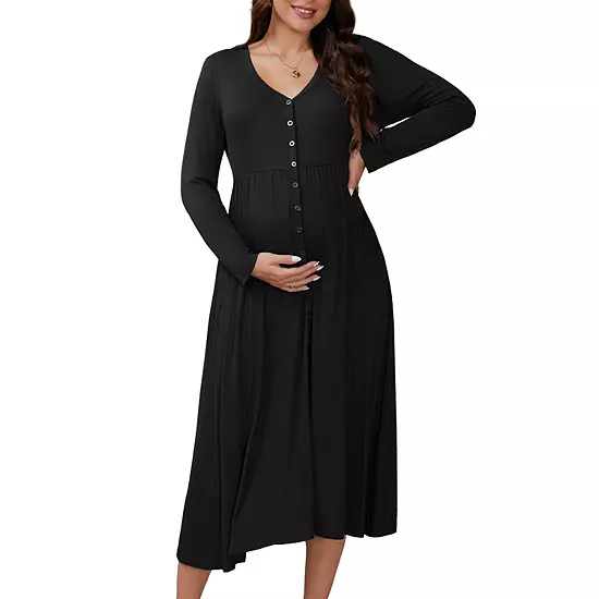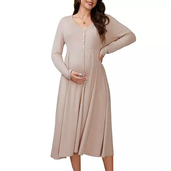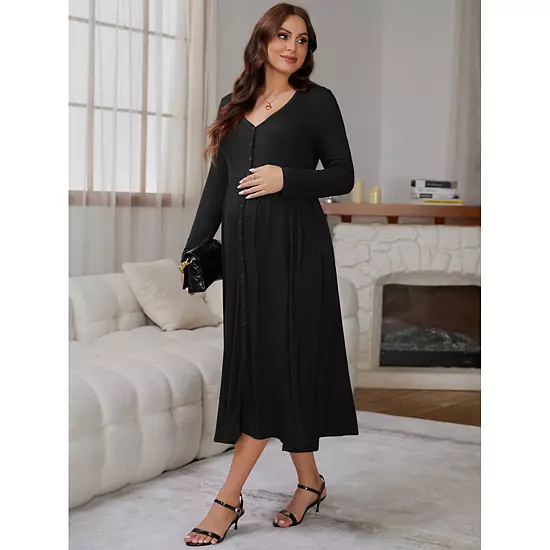 This casual maternity dresses is lightweight and breathable, and super cozy. This stretchy fabric fits every mommy body type, allowing every pregnant woman to find her own beauty. The button and v-neck design is easy and convenient for breastfeeding. With their soft texture, these are great as maternity winter clothes or fall dresses. Suitable for daily wear, this maxi dress goes well with casual shoes and minimal accessories. Elevate it for daily wear with a diamond necklace, earrings, high heels, and a clutch for a refined look, making you more feminine. A versatile and timeless wardrobe staple, it remains suitable even post-pregnancy. This knitted maxi dress is both classic and chic, making it easy to catch the eye in a crowd!