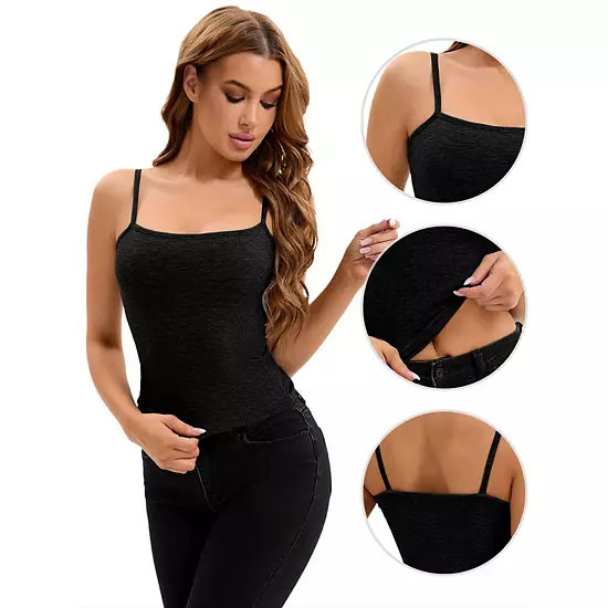 Ribbed, Basic, Disadjustable Spaghetti Strap, Cami; Whether worn as a base layer for added warmth or as a standalone piece for a casual look, these camisoles offer versatility and flexibility in styling for various occasions.; Basic tank top can worn for laying or just wearing, matched with overalls, sweatpants, jeans, sport dress, skirts for any season.