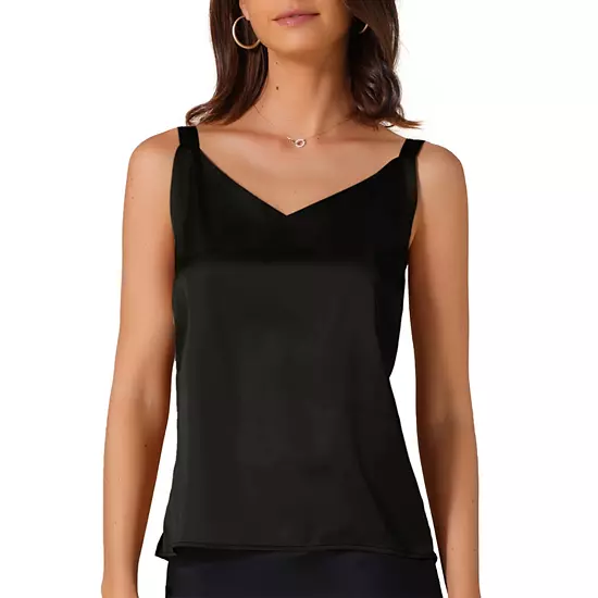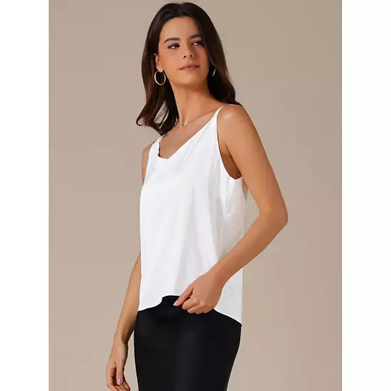 These trendy tank tops enhance your chic appeal and elongate the figure line; perfect for both party and casual wear; this satin top is convenient in fall, it is easy to wear in daily life; you could pair this chic blouse with a blazer in fall, spring, and summer.