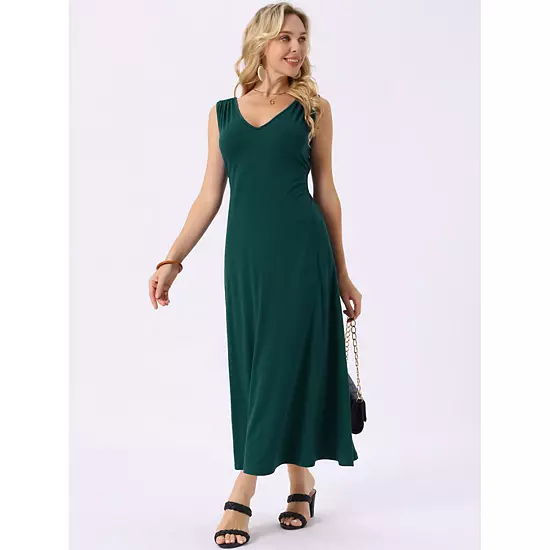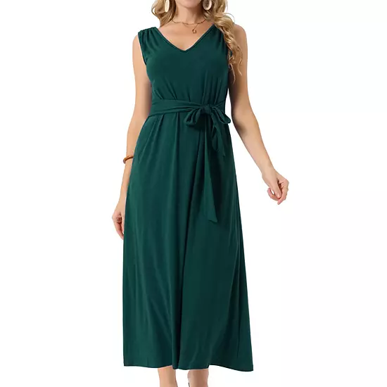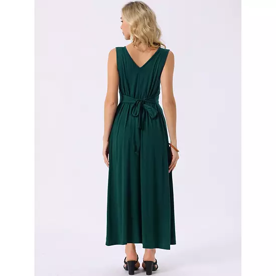 Sleeveless dress is made from soft and lightweight fabric, making it perfect for any season. It is comfortable, breathable and stunning; Features: Sleeveless/V Neck/Tie Waist/Two Side Pockets/Maxi Elegant Dress; Style:We maxed out the style with this women summer dress,a deep V-neck in front and back for a feminine touch, and an attached belt to tie in front, back, or wrapped around for fun versatility; Occasion : The tank dress making for an important event, wedding, dating, night out, party, cocktail or special occasion; The v neck casual dress has a chic and understated design that makes it easy to accessorize with your favorite shoes.