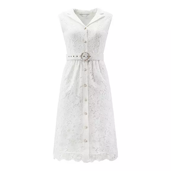 Keep your look professional and stylish in this dress, featuring a lace floral fabric, notched lapel collar, sleeveless, full lined, button down and belted; Focused on Ladies’ Formal Wear – This dress can be a perfect addition to almost any outfit from formal to daily wear, great for work, meeting, office, businesses, party, cocktail, wedding, casual, etc; Pair with high heels for an elegant cocktail look.