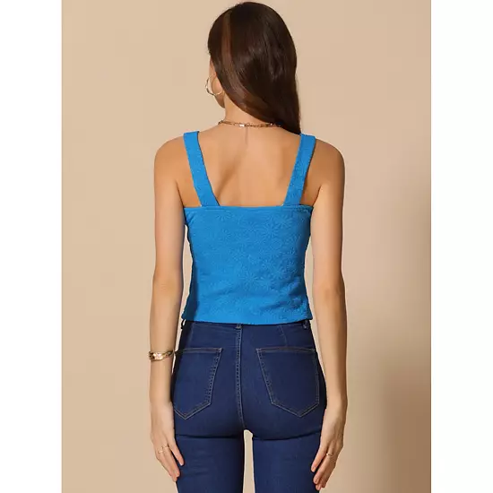 Tank Top Design Feature: crop tops, cami vest, sleeveless, floral straps, casual square neck, 3D flower print, floral pattern, backless, solid color, slim fit, apricot, blue, avocado green; This square neck crop tank cami blends daily wear, workout, weekend, hang out, beach, club, party, coffee shop, concert, lounge, street wear, athletic, school and casual styles-definitely a must-have; Fashionable Matching Options: This trendy tank top casually styles with jeans/skirts or can be tucked under a high-waisted skirt/pants for a work look.