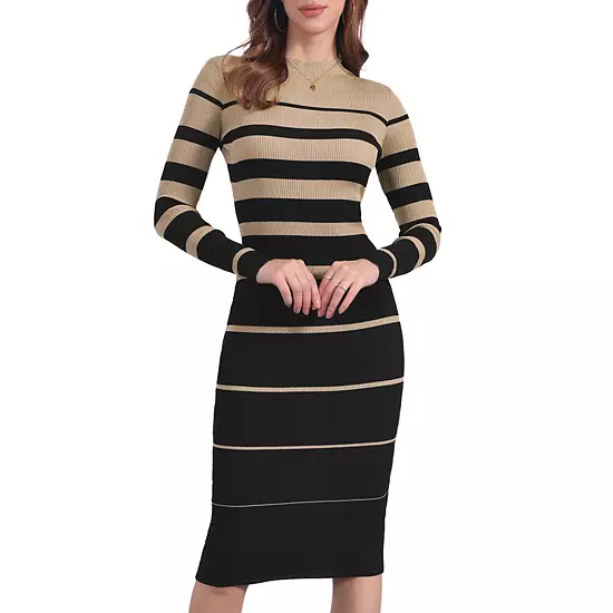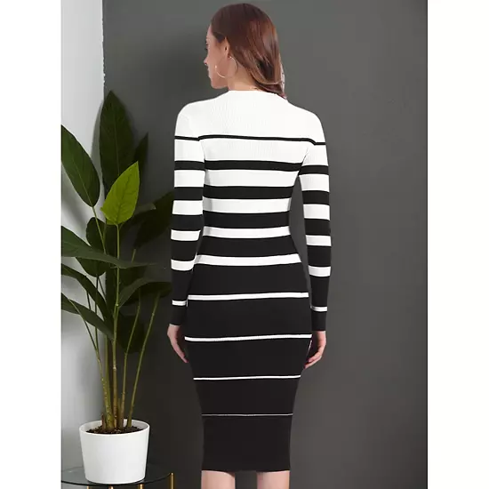 This dress features a fashionable striped pattern and a slim fit design; Occasion: Dating, Daily Wear, Work, Semi-formal Events, Dressy Occasions, Festival, Christmas, Going Out, Party, Vacation, etc; Pair it with coats and boots for a stylish fall-winter look.
