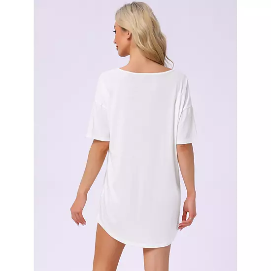 Women’s nightgown boyfriend pajamas, short sleeves, V-neck, chest pockets, solid color, curved hem, above knee length, let you feel relaxed and comfortable. Women’s T-shirt nightgown is perfect for leisure, sleeping, pajama party and hanging out with family or friends; Women’s nightgown pajamas is a great gift for your girlfriend, wife, mother or sister or yourself, can be used as pajamas, lounge wear, casual home wear.