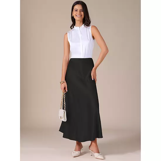 - Model is wearing the casual flowy skirt in size XS (Height: 5’8′, Weight: 115 lbs)