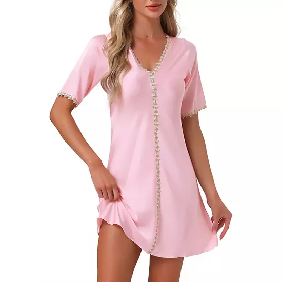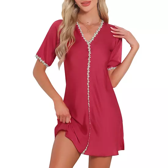 Indulge in comfort and style with our women’s nightgown sleepdress featuring a soft V-neck and short sleeves; This loungewear piece offers a cozy feel and relaxed fit for ease of movement; The classic design of the V-neck short sleeve nightgown exudes elegance and simplicity, perfect for unwinding at home or running errands; Made from breathable fabric, this versatile piece is suitable for year-round wear; Elevate your sleepwear collection with this chic and comfortable nightdress.