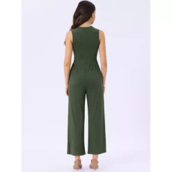 Summer Jumpsuit For Women’s Dressy Casual One Piece Outfits Sleeveless Crewneck Wide Leg Pants