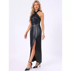 Summer Spaghetti Strap Maxi Dress For Women’s Cowl Neck Stretchy Mesh Flowy Wedding Guest Dresses