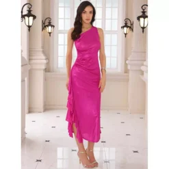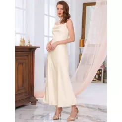 Women’s Satin Spaghetti Strap Cowl Neck Midi Dresses Ruched Evening Cocktail Sleeveless Midi Dress