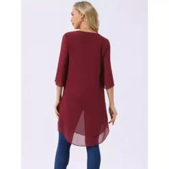 2 Packs Women’s High Low Tops Scoop Neck Chiffon Blouse Asymmetrical Loose Shirt 3/4 Sleeve Tops