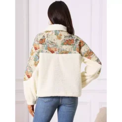 Women’s Winter Sweatshirt Long Sleeve Lapel Half Zip Faux Fur Cat Contrast Pullover With Pockets